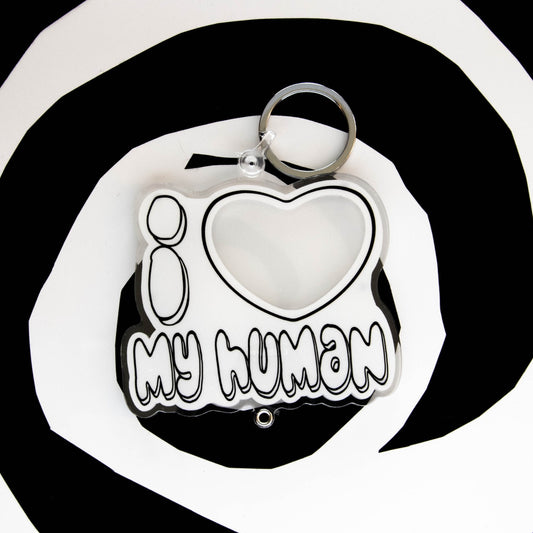 I ❤️ My Human Doodle Photo Shaker Keychain
